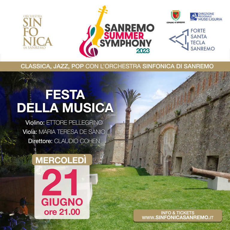 È ai nastri di partenza l’estate in musica della Riviera di Ponente con la seconda edizione della “Sanremo Summer Symphony”, la stagione estiva dell’Orchestra Sinfonica di Sanremo da giugno ad agosto con quattordici spettacoli tra cui molte prime assolute.
