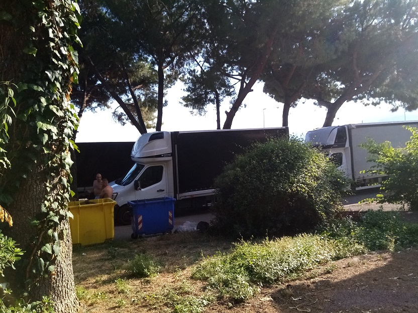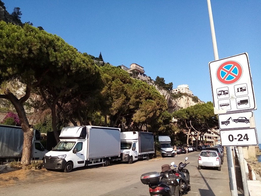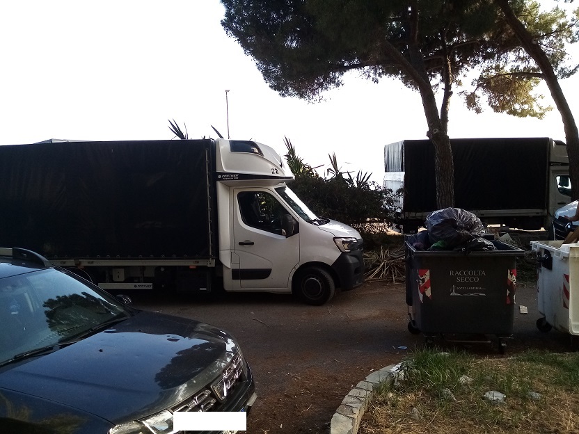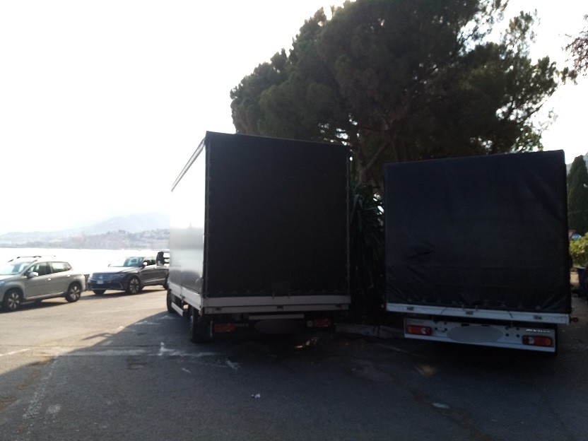 "Ancora un giorno di delirio e parcheggio selvaggio di mezzi pesanti sul Piazzale de Gasperi a Ventimiglia. Il primo week-end d'estate vede mezzi ingombranti infilati in ogni spazio utile, ai limiti dell'incredibile, come testimoniano le fotografie a corredo. Ci si domanda cosa possa accadere nel caso di un imprevisto che preveda lo sgombero immediato del sito o l'ingresso di mezzi di soccorso quali ambulanze e pompieri, considerato che alcuni di questi autocarri insistono bellamente sulla carreggiata. Inoltre, si segnala come codesti mezzi, in sosta spesso anche per tre giorni e tre notti consecutive, trasformando di fatto il parcheggio in un campeggio abusivo, effettuino manovre pericolose, entrando non di rado contromano e a velocità sostenuta. Non da ultimo: il deperimento progressivo dello stato dell'asfalto causato dagli stessi, generando spaccature e profonde buche nell'asfalto. Si sollecita un intervento che, risolutivo, porrebbe fine ad una situazione, specie nei fine settimana, ormai insostenibile.
