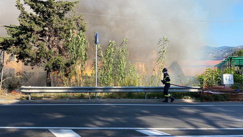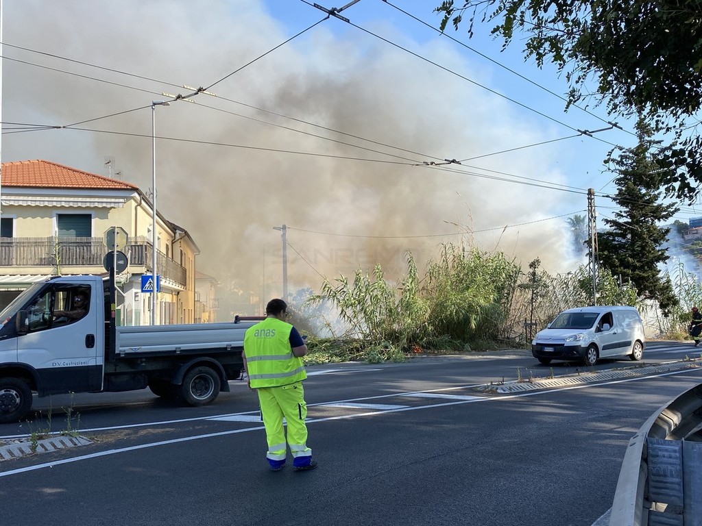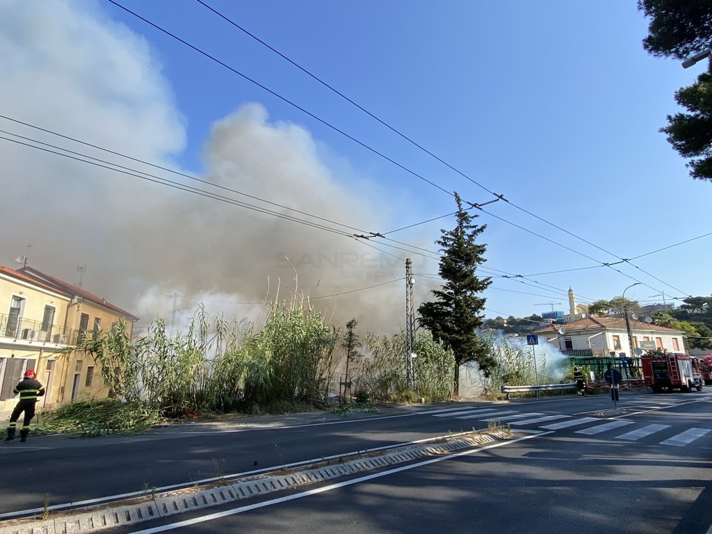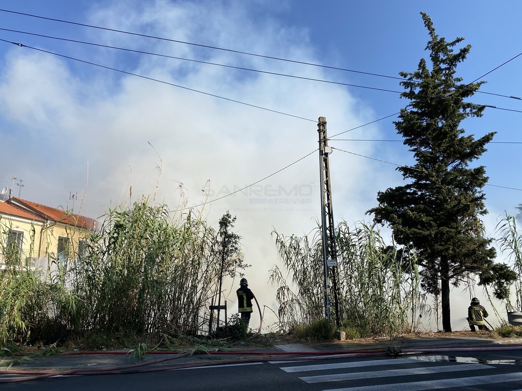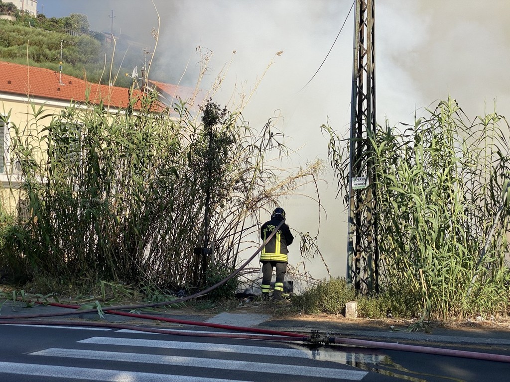 Sanremo: fiamme sull'Aurelia a Bussana, incendio tra le case e un vivaio (video)