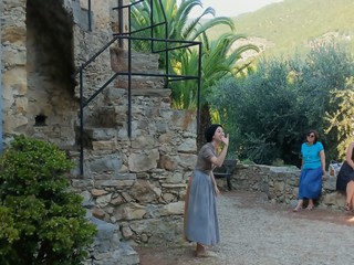 La cerimonia è stata preceduta dallo spettacolo teatrale itinerante “Il Mondo di Irene Brin” del Teatro dei Dieci per la regia di Fulvia Roggero e di Silvia Villa con gli attori Antonella Lercari, Matteo Cassini e le stesse registe. Lo spettacolo ha contribuito a scoprire i personaggi di Vincent Torre e dell’illustre zia e ha incluso, pure, un breve percorso che è partito da piazza Caprera, nell’antico borgo di Sasso, per approdare nello splendido Giardino di Irene.
