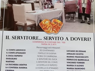 Sarà a cura del Teatro della Luna anche la commedia teatrale in costume “Il servitore...servito a dovere!”, che andrà in scena domenica 9 luglio dalle 21 nel centro storico. “E’ una commedia in costume del ‘700, una farsa in due atti. E’ un lavoro teatrale ormai collaudato che replichiamo nel centro storico di Vallecrosia per divulgare il teatro amatoriale nella nostra città. Si ringraziano i soci e i collaboratori. Lo spettacolo sarà ad ingresso libero“ - afferma Luciano De Stefanis che ne curerà la regia - “Stiamo preparando anche altri lavori e, inoltre, quest’anno ricorre il ventennale di attività della compagnia“.