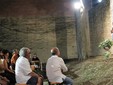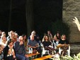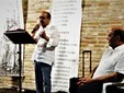 Il giornalista ha affascinato il pubblico raccontando la storia di due personaggi, Libereso e Calvino, che si sono incontrati in un periodo particolarmente significativo della loro esistenza. Uno dei più grandi scrittori del novecento come Italo Calvino ha conosciuto un singolare, intelligente e geniale giardiniere, chiamato da Mario Calvino, a lavorare come stagista nella Stazione Sperimentale di piante tropicali che aveva aperto presso la sua villa a Sanremo. Italo non può fare a meno di notare quel giardiniere, strano perfino nel nome, Libereso, che oltre che per la passione per la natura, aveva ereditato dai suoi genitori lo spirito anarchico e il vegetarianesimo. L'osservazione attenta del comportamento di Libereso Guglielmi ha spinto Calvino ad immortalarlo in un meraviglioso racconto, "Un pomeriggio, Adamo" che, nella notte magica di Monte Vidon Combatte, è stato letto magistralmente dal bravissimo attore Piergiorgio Cinì. Il tutto in un contesto davvero straordinario, rappresentato dall'incantevole giardino della "Palombara", arricchito dai teli di canapa, illustrati dall'artista Rosaria Torquati, con immagini e parole dei due personaggi, davanti ad un pubblico attentissimo.