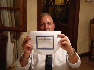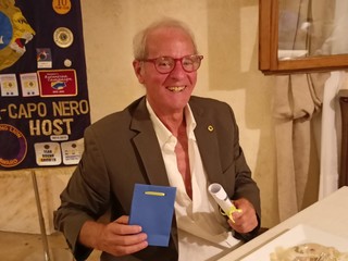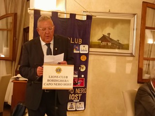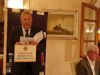 “Il 23 gennaio del 2023, invece, abbiamo donato un contributo di 100,00 euro su un fondo benefico in memoria del PDG Carlo Calenda, destinato alla costruzione di un pozzo in Burkina Faso. Il 4 febbraio del 2023, in coordinamento con gli altri clubs della zona e con la partecipazione di due militi della Croce Azzurra Misericordia di Vallecrosia, abbiamo svolto il service della raccolta alimentare presso il supermercato Conad di Bordighera. La nostra raccolta è stata consegnata alla parrocchia della Immacolata Concezione (Terrasanta) per le persone bisognose e per la mensa dei poveri che viene gestita dalla parrocchia. Il 21 febbraio del 2023, in occasione del meeting ordinario presso il ristorante del Capo di Bordighera, sono stati raccolti tra i soci ben 1000,00 di euro a favore della fondazione LCIF per l’aiuto delle popolazioni colpite dal terremoto in Turchia e Siria. LCIF ci ha ringraziato con una lettera" - sottolinea Berro - “Il 17 marzo 2023, giorno di festa della bandiera e anniversario della Costituzione (quest’anno 75° anniversario), abbiamo partecipato, con una delegazione, alla cerimonia che si è svolta a Vallecrosia sul lungomare, alla presenza delle autorità militari e civili: in questa occasione abbiamo provveduto alla distribuzione di bandiere con il tricolore ai bambini delle scuole che hanno partecipato alla manifestazione. Il 1° aprile 2023 il presidente ha partecipato, con intervento sulle mura di Bordighera, alla conferenza tenutasi a Ventimiglia per celebrare 'il giorno delle mura'. Il 13 aprile 2023 abbiamo piantumato nuovi alberi in accordo con l’assessore all’Istruzione del comune di Bordighera. Abbiamo piantato un albero già ben sviluppato, un bosso, nel giardino delle scuole elementari della frazione di Borghetto, con una attiva partecipazione dei bambini con canti e poesie. Un grazie fortissimo va al corpo insegnante, che ha approfondito il tema con gli scolari e organizzato la bella manifestazione. Il costo del service è stato di 600,00 euro con fondi di cassa. Il 24 maggio 2023, in occasione del 36° anniversario della fondazione del nostro club, charter night, abbiamo proposto una raccolta di aiuti per le persone colpite dalla grave alluvione in Romagna. La generosità dei soci e dei soci fondatori, graditi ospiti, è stata notevole: abbiamo raccolto la somma di 1300,00 euro, che abbiamo versato su un cc speciale gestito dal multi-distretto Italia. Per giugno/luglio del 2023 è in corso l’ultimo service dell’anno lionistico, ovvero la preparazione di una tavola di orientamento, con il nostro logo, da collocare a S. Ampelio sulla porzione alta della rotonda che guarda verso la costa francese. La targa, in acciaio inox lunga 120 cm, è stata autorizzata dal comune sul piano paesaggistico ed è stata incisa: si prevede di installarla a breve con una bella cerimonia ufficiale. Costo totale 2000,00 euro con fondi di bilancio. È proseguita, come tutti gli anni, la raccolta degli occhiali usati, curata dalla segretaria Laura. Infine, con la disponibilità del socio Roberto Ervo, è stato portato avanti il 'progetto Martina', ovvero la prevenzione oncologica portata nelle scuole. Mi fermo qui, ricordando la soddisfazione che ci coglie tutte le volte che serviamo e, da non dimenticare, l’importo complessivo raccolto che ammonta a circa 6500 euro. Faccio gli auguri di buon lavoro al nuovo presidente e al nuovo direttivo e un grandissimo grazie ancora a tutti. We serve”.