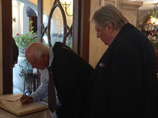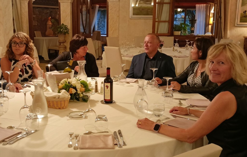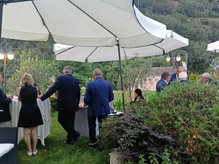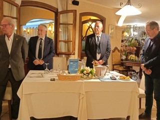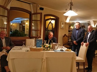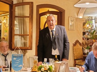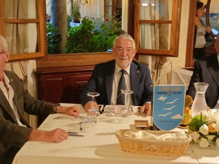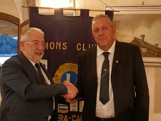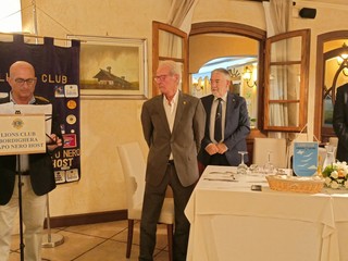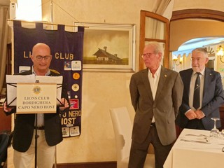 “Siamo tutti insieme a festeggiare i nuovi officers dell’anno lionistico 2023-2024, in questa bellissima serata di passaggio delle cariche. Prima di consegnare il martelletto al nuovo presidente Gianni Amalberti, desidero ringraziare tutti i soci che, dedicando parte del loro tempo libero, hanno contribuito alla realizzazione dei numerosi services, che hanno dato visibilità al club nell’ambito cittadino e hanno contribuito ad una sostanziosa raccolta fondi. In particolare, ringrazio il consiglio direttivo, per l’aiuto che mi ha dato nella definizione delle attività di servizio, e, in particolare, la segretaria Laura e il tesoriere Alberto, che hanno svolto con precisione e competenza le loro attività burocratiche" - ha dichiarato il past presidente Augusto Berro prima di scambiarsi le spille con il vicepresidente Giovanni Amalberti - "Poi, indiscutibilmente unico, ringrazio il nostro cerimoniere e grande comunicatore Rino, che ha organizzato con eleganza e passione le nostre serate conviviali e ha documentato e fatto conoscere al pubblico le nostre attività di servizio. Devo assolutamente ringraziare il vicepresidente Gianni, che mi ha fatto compagnia in tantissime uscite e riunioni a livello di zona e di distretto. Ricordo con piacere tutti gli altri membri del consiglio che, con le loro brillanti idee, hanno contribuito alla definizione di molti services”.