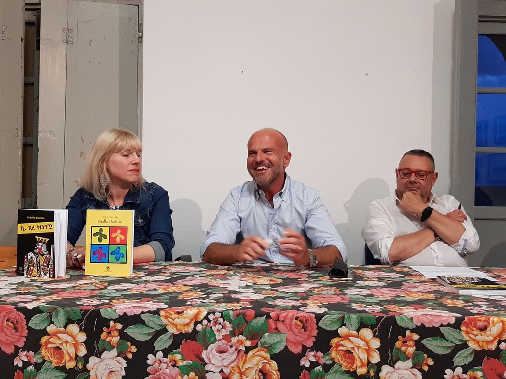 Le parole dell'autore, Rodolfo Rotondo: “Sono contento di essere qui questa sera in Piazza Pagliari dove è ambientato il finale di “Giallo Basilico”, e che diventa il punto di partenza de “Il re muto” il nuovo romanzo anche questo ambientato a Imperia e in parte ad Andora”.