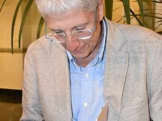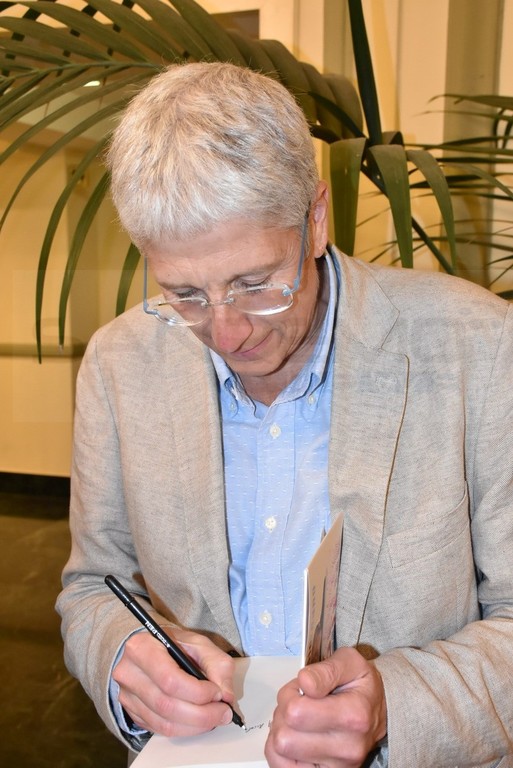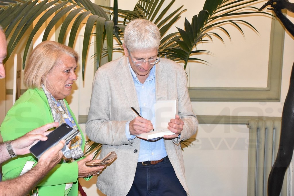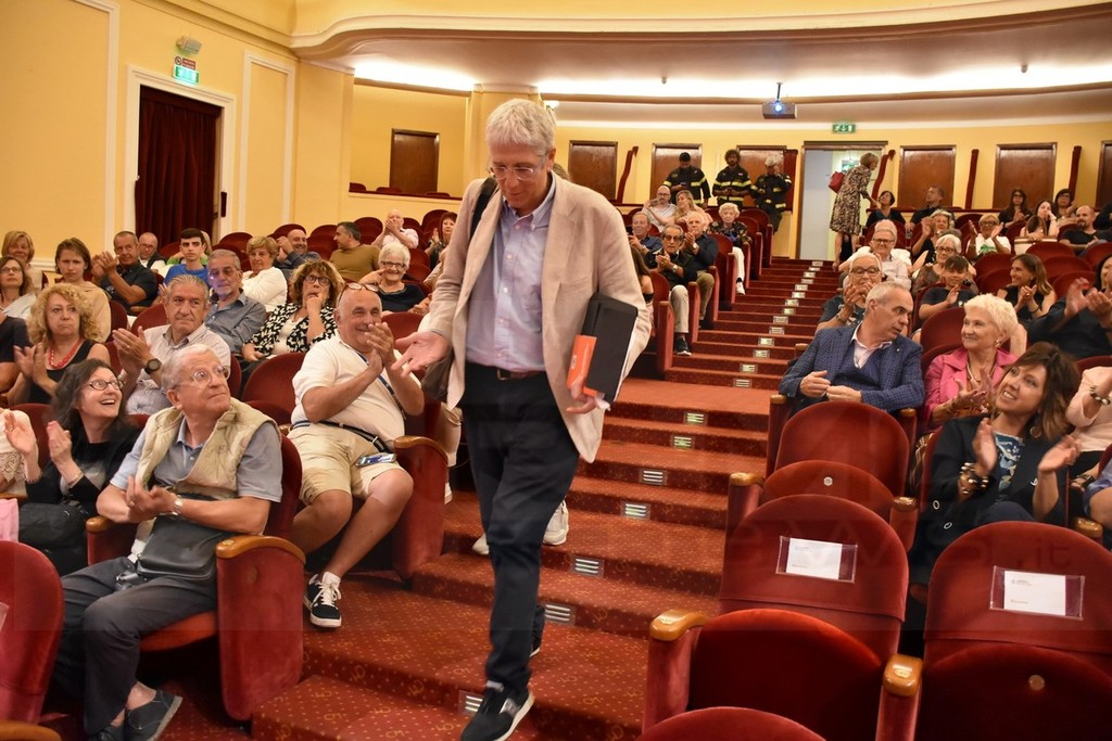 “Siete dei pazzi – ha esordito Giordano – a venire a vedere la presentazione di un libro al venerdì sera, perlopiù con uno scrittore che ha una pessima voce e non è certo bello”. Lo ha detto in modo ironico il direttore, salutando la platea del primo incontro estivo, proposto questa volta eccezionalmente il venerdì.