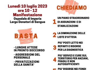 La CGIL di Imperia e della Liguria ha organizzato per lunedì 10 luglio alle ore 10.00 una manifestazione davanti all’Ospedale di Imperia (Largo donatori di sangue).