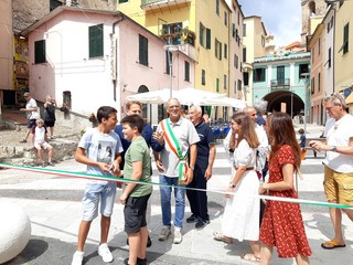 È stata riaperta al pubblico oggi, dopo gli interventi di rigenerazione e riqualificazione, piazza Doria a Dolcedo. Luogo di accesso al centro storico del borgo e sede del municipio, è stata pedonalizzata e riqualificata utilizzando materiale locale.