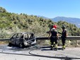 Auto in movimento prende fuoco a Taggia: in fiamme anche vegetazione