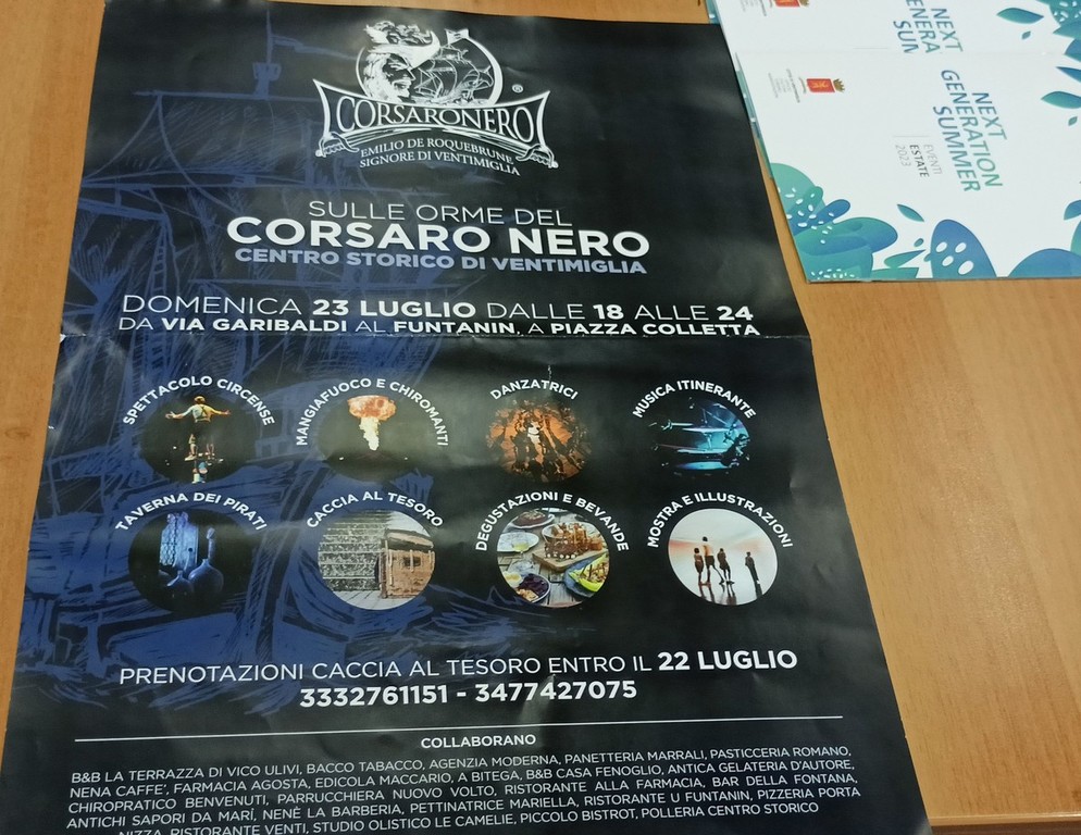 Vi sarà anche una caccia al tesoro. "La caccia al tesoro sarà divisa in due, una dedicata agli adulti e una per bambini. Sarà impegnativa e dovranno muoversi nel centro storico, sarà un'occasione di divertimento e scoperta. Vi saranno delle chicche davvero uniche. Abbiamo già aperto le iscrizioni. Si accettano prenotazioni entro il 22 luglio contattando il 3332761151 o il 3477427075. E' l'occasione per riscoprire il centro storico" - dice Arianna Boeri di Ventimiglia tra le porte antiche, l'altra associazione organizzatrice dell'evento.