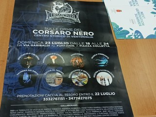 Vi sarà anche una caccia al tesoro. "La caccia al tesoro sarà divisa in due, una dedicata agli adulti e una per bambini. Sarà impegnativa e dovranno muoversi nel centro storico, sarà un'occasione di divertimento e scoperta. Vi saranno delle chicche davvero uniche. Abbiamo già aperto le iscrizioni. Si accettano prenotazioni entro il 22 luglio contattando il 3332761151 o il 3477427075. E' l'occasione per riscoprire il centro storico" - dice Arianna Boeri di Ventimiglia tra le porte antiche, l'altra associazione organizzatrice dell'evento.
