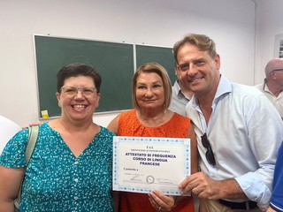 “Consegnati questa mattina a Imperia, nella sede della associazione FAI, i diplomi del corso di lingua francese organizzato dal FAI e finanziato da Regione Liguria. Tra le autorità presenti, l'assessore con delega ai Rapporti con i lavoratori frontalieri Marco Scajola, in rappresentanza di Regione Liguria e convinto sostenitore di questa iniziativa che, negli ultimi anni, ha formato circa 500 lavoratori frontalieri. Il corso – spiega il Presidente dell’Associazione FAI e consigliere comunale Roberto Parodi –, gratuito e senza limiti di accesso, si rivolge, tra l’altro, a chi si avvia a lavorare in Francia e nel Principato di Monaco e necessita di un approfondimento linguistico. Per l’anno 2024 sono stati già garantiti 3 corsi settimanali. La mancanza nelle scuole della lingua francese tra le materie di studio penalizza una città di frontiera dove la principale fonte di lavoro si trova in Francia e nel Principato di Monaco. Questo corso sopperisce a questa carenza ed è d’aiuto per acquisire ulteriore know how”.