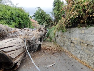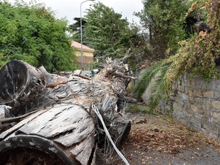 Sanremo: eucaliptus crollato in via Tasso, rinviato a domani il lavoro di rimozione e cambio di viabilità (Foto)