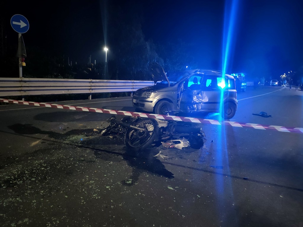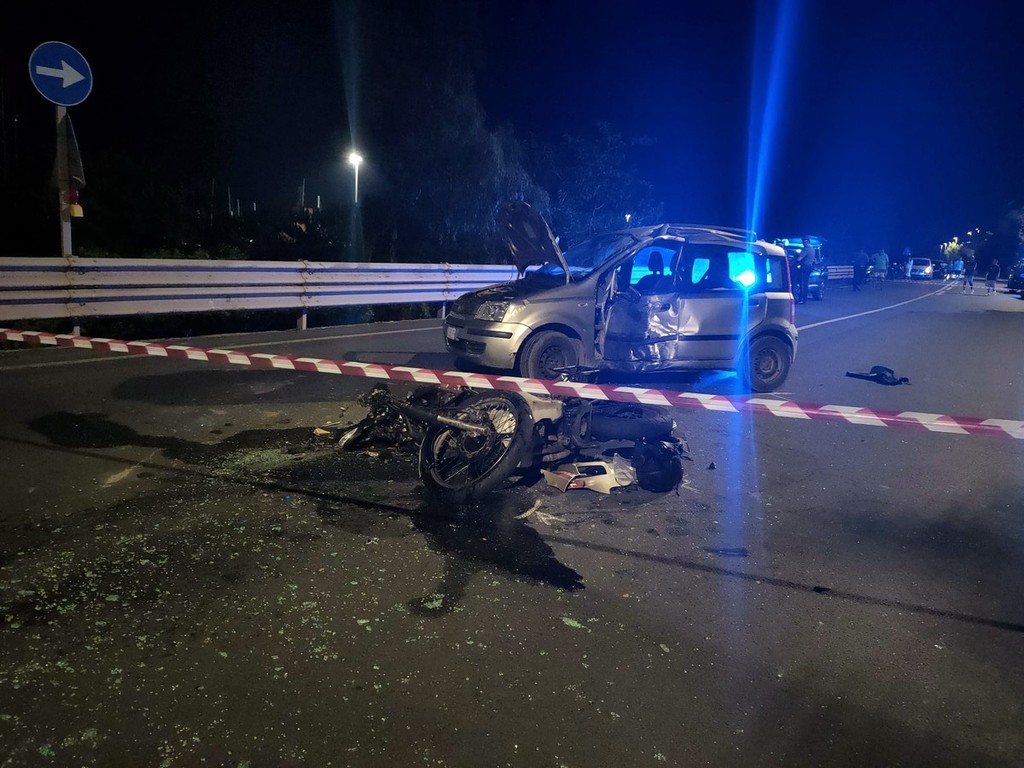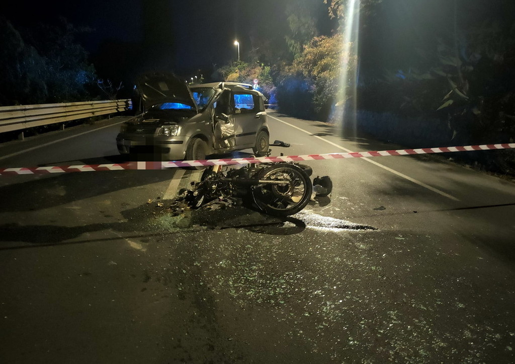 È accaduto ieri sera all'altezza di Aregai. L'uomo era alla guida dell'auto, grave il centauro elitrasportato in ospedale a Pietra Ligure. La passeggera è stata portata prima a Sanremo e poi al San Martino di Genova