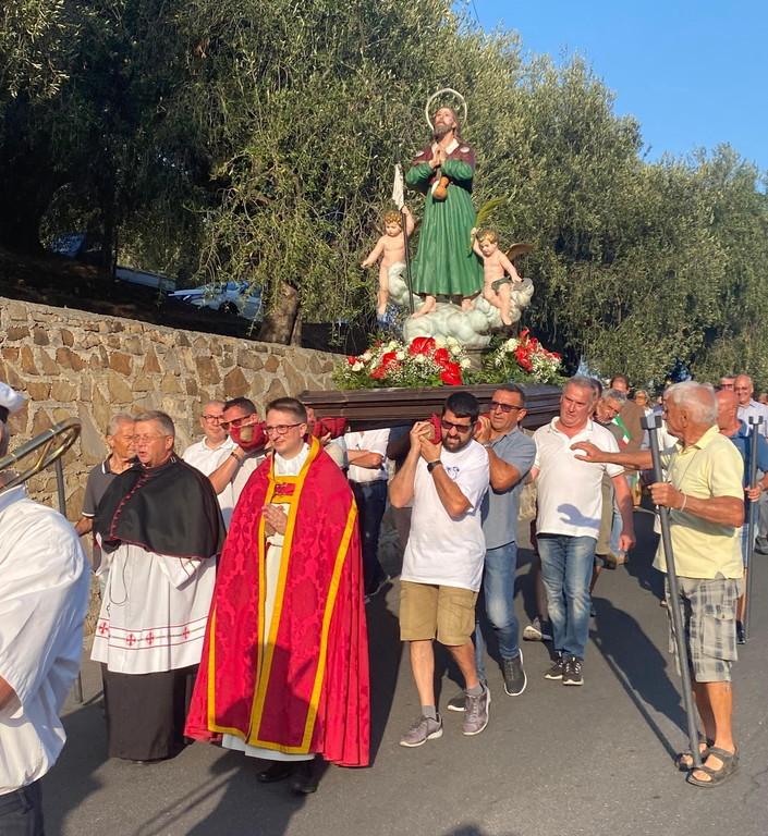 Si è svolta ieri pomeriggio la festa Patronale di San Giacomo Apostolo Patrono di Diano Calderina. Dopo la Santa Messa celebrata da Don Luca Gabriel per le vie della frazione Dianese si è snodata la processione con l’effige del Santo. La processione oltre a tanti fedeli ha visto la presenza degli amici di Calderina e Muratori, Autorità civili e militari, croce rossa ,le confraternite e banda città di Diano Marina. Al termine la serata è proseguita con la tradizionale bicchierata sul piazzale della chiesa.
