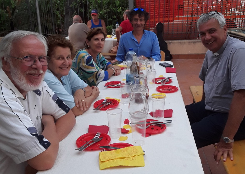 A seguire, il cortile si è trasformato con grandi tavolate decorate in rosso e giallo, per la serata spagnola, Ospiti, parenti e tutti i partecipanti della Santa Messa, hanno potuto degustare dell’ottima sangria e una superba paella, finendo la cena con un gustoso salame dolce. Il tutto preparato nella cucina della struttura dalle sapienti mani delle cuoche della Casa. La collaborazione di tutto il personale e dei parenti, la voglia di stare insieme, di tornare alla normalità e fare tante cose belle, l’allegria degli Ospiti e della grande famiglia di Casa Rachele sono gli ingredienti vincenti di queste belle serate estive.