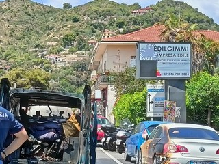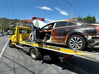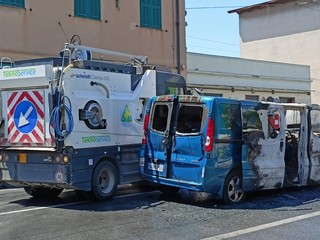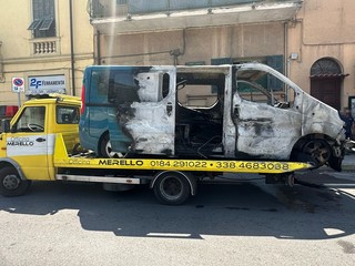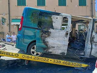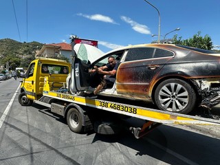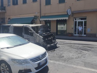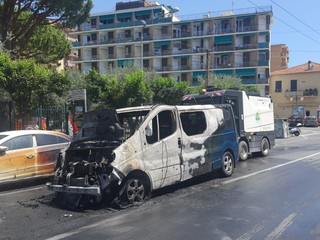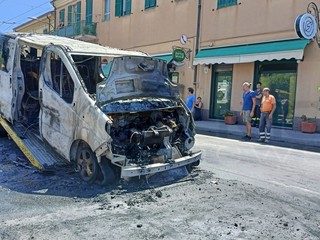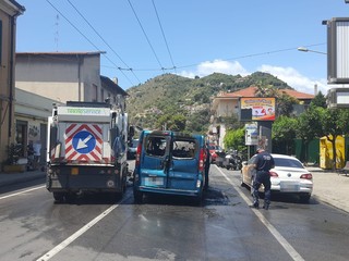 Camporosso: incendio sull'Aurelia, in fiamme un furgoncino spagnolo e due auto, traffico bloccato (Foto e Video)