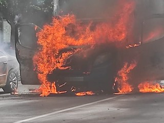 Le fiamme, probabilmente partite da un corto circuito alla batteria, hanno rapidamente avvolto il mezzo creando anche un’alta colonna di fumo