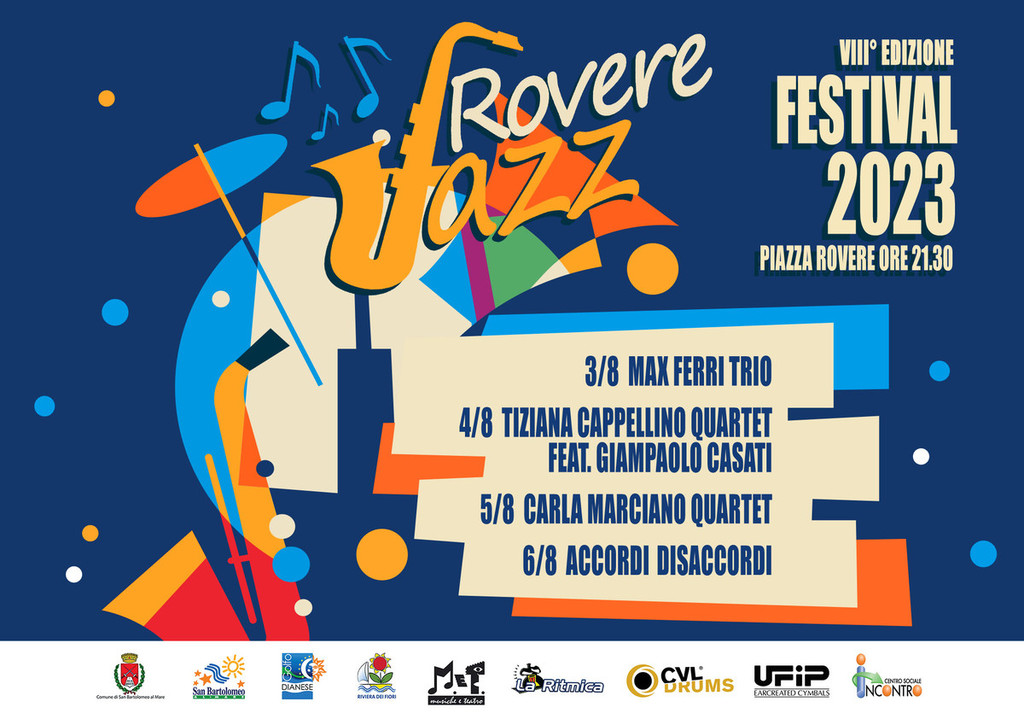 Inizierà giovedì 3 agosto l'ottava edizione del Rovere Jazz Festival, attesissimo appuntamento con la musica jazz organizzato dal Comune di San Bartolomeo al Mare in collaborazione con il Centro Sociale Incontro, con la Direzione artistica di Alex Nicoli (Associazione La Ritmica) e il supporto tecnico di MA Show Solutions. Quattro serate consecutive dedicate alla buona musica da giovedì 3 a domenica 6 agosto, sempre alle 21.30 in piazza Rovere, con ingresso libero.