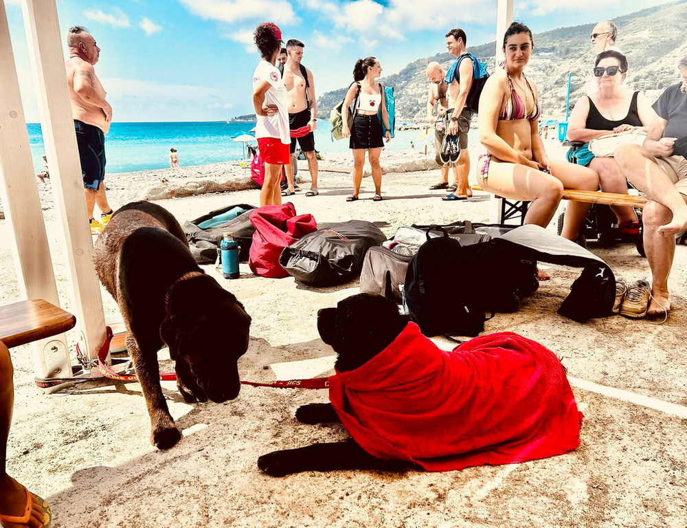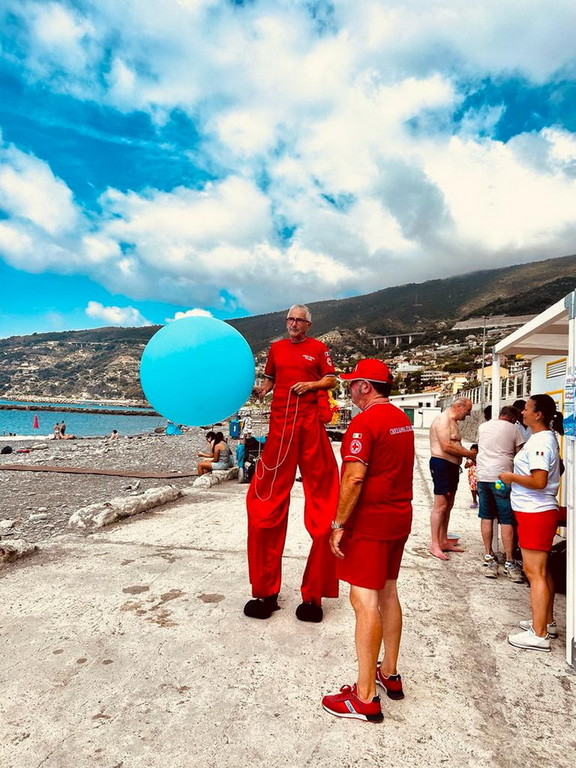 "La mattinata, svoltasi nella spiaggia libera davanti al Comune di Ospedaletti, ha visto la partecipazione del gruppo Opsa di Cri Liguria con le persone diversamente abili. Grandi e piccini sono stati portati in mare e assistiti dai volontari sotto l'occhio vigile dei cani di razza Labrador della Scuola Italiana Cani Salvataggio - SICS Vela con sede ad Albissola Marina presso i Bau Bau Village. Hanno partecipato a Galleggiando Bolleggiando, conquistando i cuori di tutti i presenti, tre unità cinofile: Daiquiri, Moka, Ruggine con i loro conduttori".