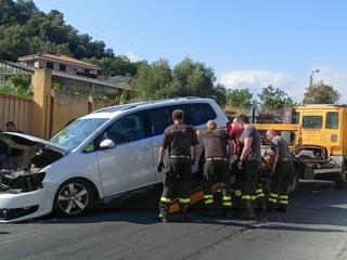 Camporosso: vanno a sbattere con l'auto sulla provinciale verso Dolceacqua, due donne ferite (Foto e Video)