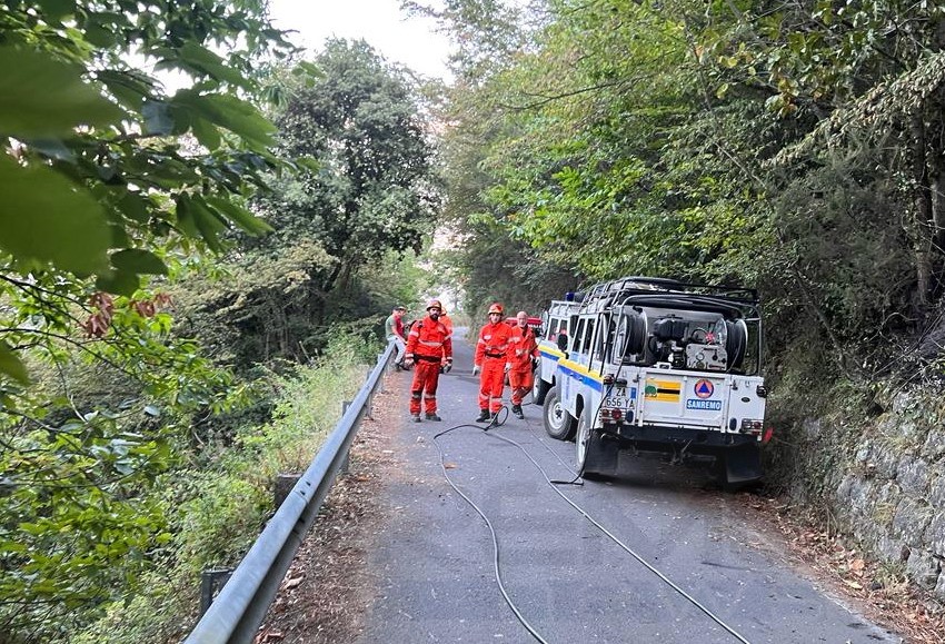Sanremo: incendio boschivo sopra Coldirodi, Vvf in azione e strada chiusa per un'ora (Foto)