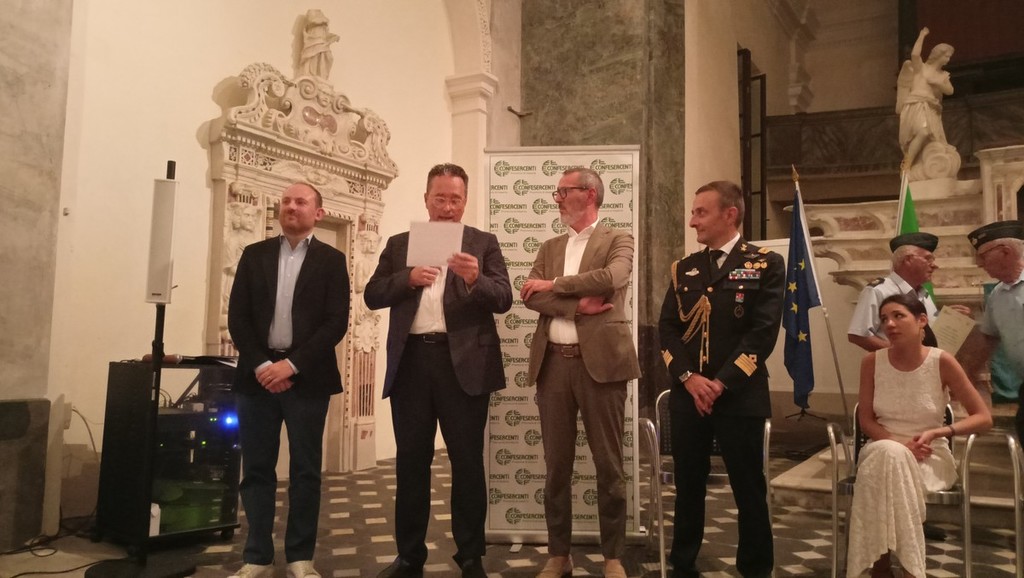 Istituito dalla Confesercenti provinciale, in collaborazione con la società Marina Development Corporation, il riconoscimento viene assegnato ogni anno ad un cittadino ventimigliese che si è particolarmente distinto nella sua professione a livello nazionale e internazionale. Nel 2022 la scelta cadde su Gianfranco Piras, manager affermato a livello italiano, mentre quest’anno è stato consegnato ad un altro ventimigliese doc: il colonnello dell’Aeronautica Emanuele Spigolon. Diplomato al liceo scientifico Aprosio, Emanuele Spigolon si è poi laureato in ‘Scienze Aeronautiche’ all’Università Federico II di Napoli. Ottenuto il brevetto di pilota militare presso la scuola internazionale di Sheppard AFB, in Texas, entrò nell’Aeronautica nel 1991. Pluridecorato con una lunga carriera al servizio del nostro Paese, ha infatti all’attivo oltre 2.700 ore di volo, oggi ricopre il compito di Addetto Aeronautico presso l’Ufficio militare dell’Ambasciata italiana di Washington.