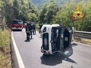 Nel primo pomeriggio un'auto si è ribaltata ad Agaggio Inferiore, Molini di Triora. Il mezzo non è uscito di strada e il guidatore