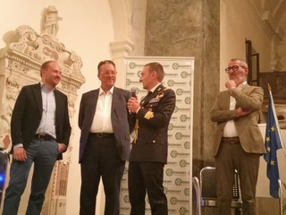 Istituito dalla Confesercenti provinciale, in collaborazione con la società Marina Development Corporation, il riconoscimento viene assegnato ogni anno ad un cittadino ventimigliese che si è particolarmente distinto nella sua professione a livello nazionale e internazionale. Nel 2022 la scelta cadde su Gianfranco Piras, manager affermato a livello italiano, mentre quest’anno è stato consegnato ad un altro ventimigliese doc: il colonnello dell’Aeronautica Emanuele Spigolon. Diplomato al liceo scientifico Aprosio, Emanuele Spigolon si è poi laureato in ‘Scienze Aeronautiche’ all’Università Federico II di Napoli. Ottenuto il brevetto di pilota militare presso la scuola internazionale di Sheppard AFB, in Texas, entrò nell’Aeronautica nel 1991. Pluridecorato con una lunga carriera al servizio del nostro Paese, ha infatti all’attivo oltre 2.700 ore di volo, oggi ricopre il compito di Addetto Aeronautico presso l’Ufficio militare dell’Ambasciata italiana di Washington.