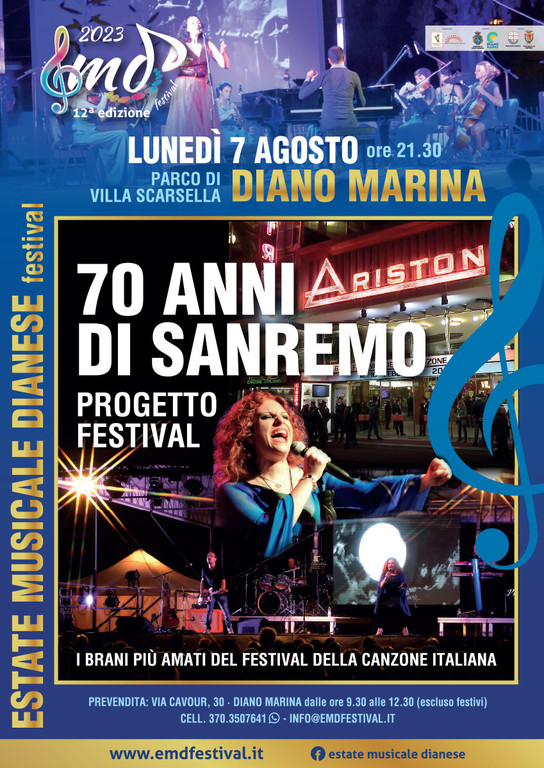 Dopo la serata dedicata all’opera, con il Rigoletto di Giuseppe Verdi, per il primo appuntamento di agosto, a Villa Scarsella “irrompe” la musica leggera con uno spettacolo dedicato ai brani che hanno fatto la storia della manifestazione canora più famosa d’Italia. “70 anni di Sanremo” è infatti il titolo della quarta serata, in programma lunedì 7, con inizio alle 21.30.