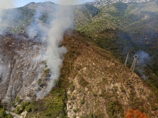 Incendio boschivo, in atto dalle 9.30 circa, nella zona di Villatella sopra Ventimiglia. Le fiamme hanno attaccato una porzione di macchia mediterranea al momento distante dalle abitazioni.
