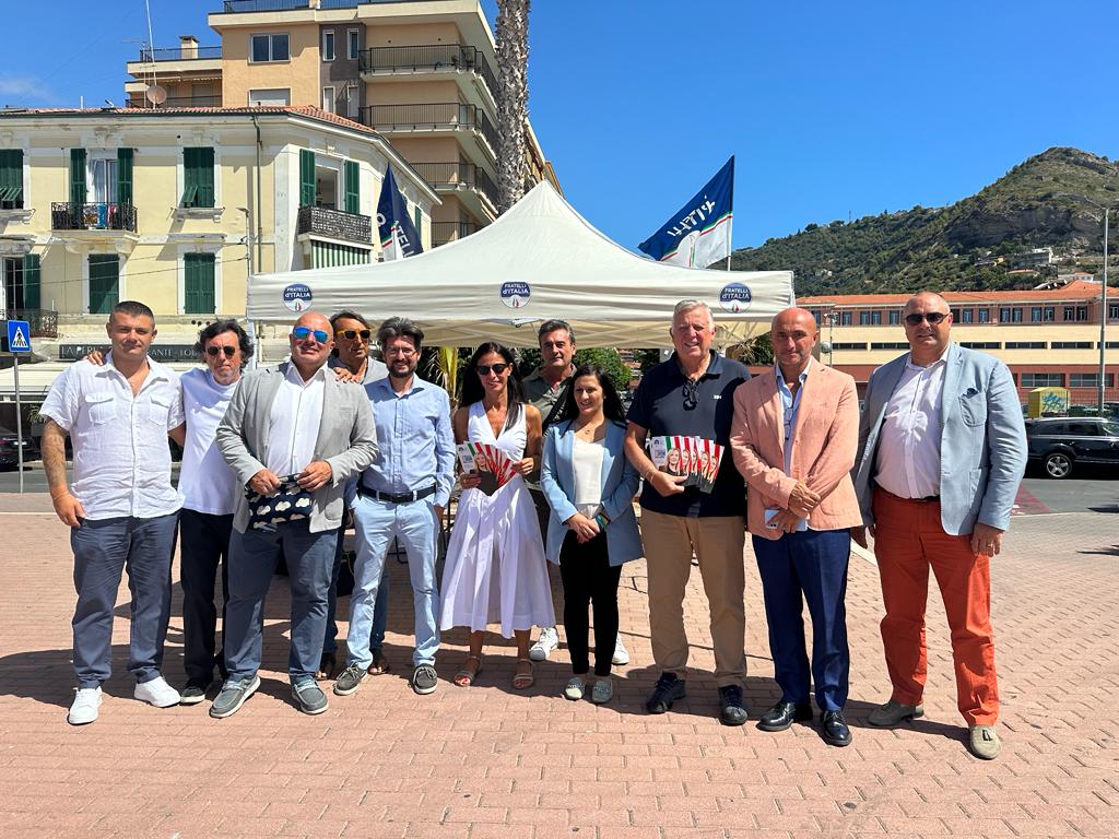 È partita da Ventimiglia la campagna di Fratelli d'Italia, "L'Italia Vincente". L'iniziativa di carattere nazionale sarùà presentata anche nel resto della provincia di Imperia. Attraverso la distribuzione di pieghevoli e tramite incontri, il partito spiegherà ai cittadini i traguardi del governo Meloni. Prossime tappe a Sanremo e San Lorenzo al Mare il 14 agosto, per poi proseguire il 19 agosto a Vallecrosia e il 20 agosto a Imperia.
