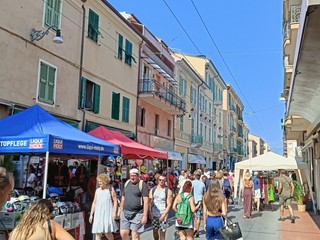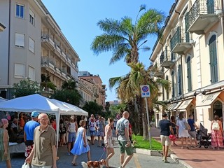 E' iniziata la "Giornata commerciale del ribasso" a Bordighera, giunta quest’anno alla 42esima edizione. Dalle 8 di questa mattina il centro città si è trasformato in un'isola pedonale dello shopping.
