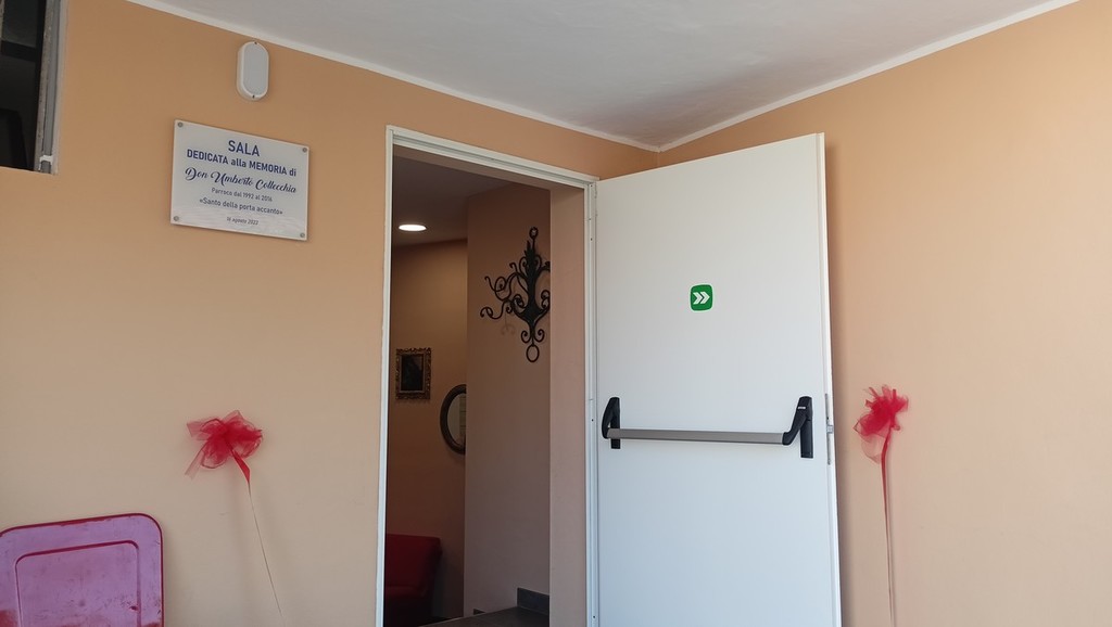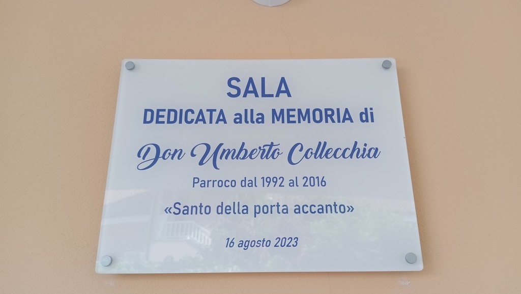 La scopertura della targa e il taglio del nastro si sono svolti alla presenza di autorità civili e religiose, del sindaco Armando Biasi, del consigliere comunale Fabio Perri, del consigliere regionale Veronica Russo, dei parenti di don Umberto, il fratello Ginetto e la nipote Angela, e della comunità, dopo la celebrazione della santa messa di San Rocco dedicata, per l'occasione, a don Umberto e a don Palmero. “Abbiamo deciso di dedicare una sala a don Umberto Collecchia per ricordare un grande parroco della parrocchia di San Rocco che ha aiutato tante persone e ha fatto la storia della comunità dal 1992 al 2016. È morto nel 2018 proprio il giorno di San Rocco e così ci sembrava giusto dedicargli la sala proprio nel giorno dell’anniversario della sua scomparsa“ - ha detto don Rito Alvarez, parroco della parrocchia di San Rocco - "E' un modo per fissare la sua presenza in quella che è stata la sua comunità parrocchiale dove ha svolto un servizio generoso contrassegnato da profonda fede e grande umiltà. Ha dedicato una vita intera alla chiesa e ai poveri".