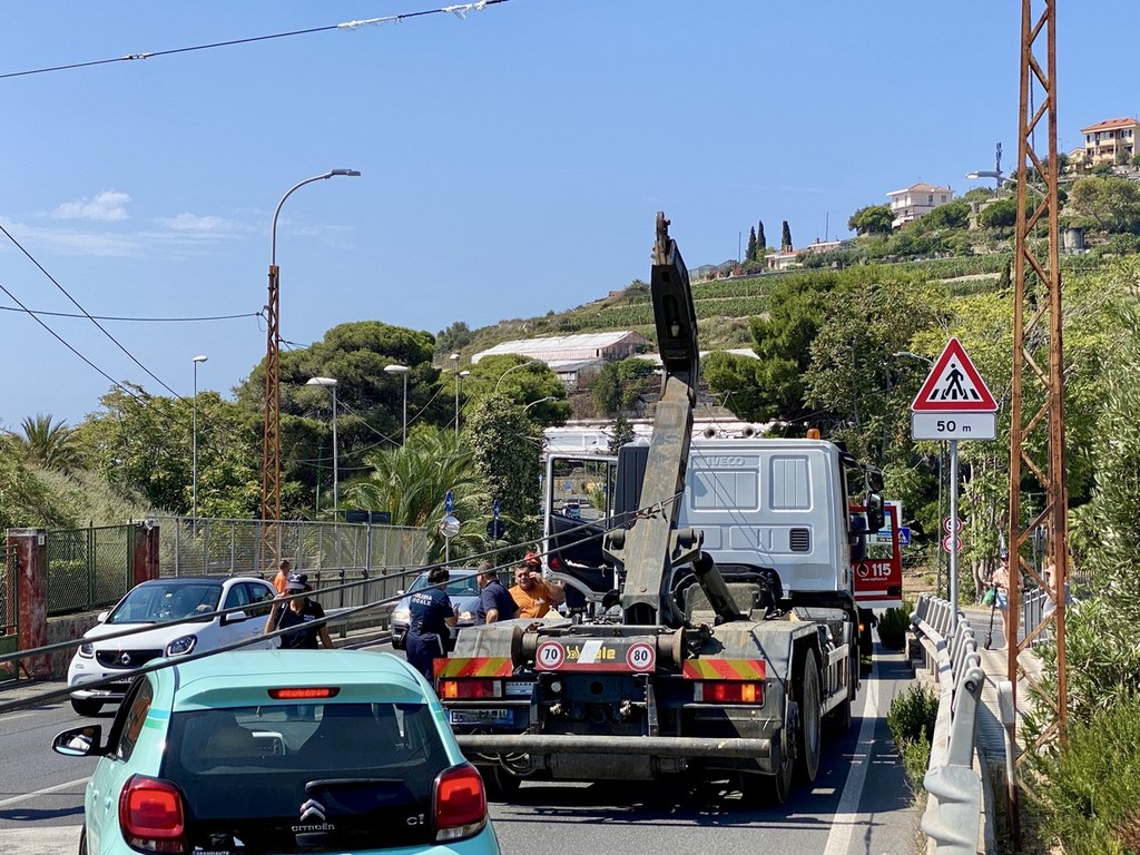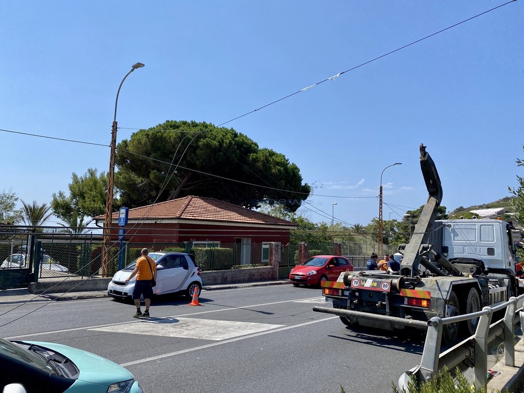 Un camion aggancia i cavi del filobus e il traffico va in tilt sulla statale Aurelia. E’ accaduto questa mattina, poco dopo le 11.30 nella zona di Bussana di fronte al supermercato.