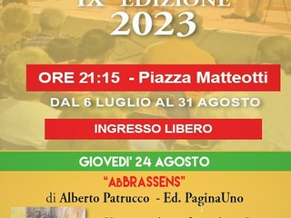 Giovedì 24 agosto alle ore 21-15 in piazza Matteotti un nuovo incontro della rassegna Sale in Zucca con un nuovo ed importante ospite, il noto cabarettista Alberto Patrucco, che presenterà il proprio libro AbBRASSENS, da cui è scaturito anche l’omonimo spettacolo teatrale.