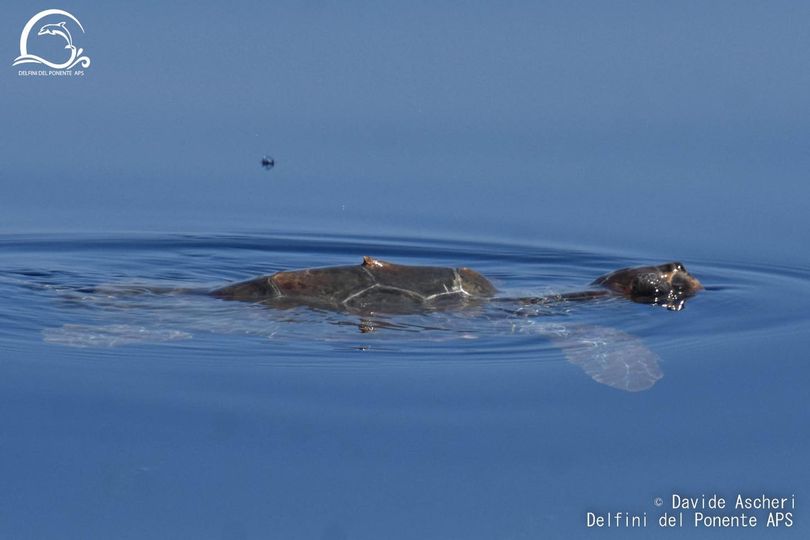 Un giovane individuo intento a riposarsi e riscaldarsi in superficie è stato fotografato in questi giorni dai biologi di Delfini del Ponente.