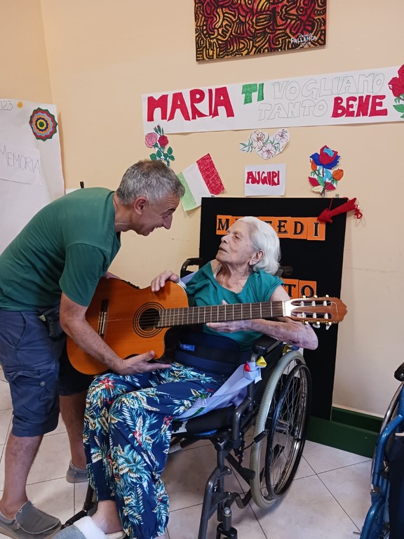 Classe 1921, la signora Maria è originaria di Gioia Tauro, ma poi emigrò in Liguria e andò a vivere a Ventimiglia alta. Ora, invece, è ospite della Fondazione Ernesto Chiappori a Latte. Da ragazza suonava la chitarra e così durante la sua festa ha avuto la possibilità di averne una dopo aver spento la candelina della sua torta, senza battere ciglio, con un solo soffio.