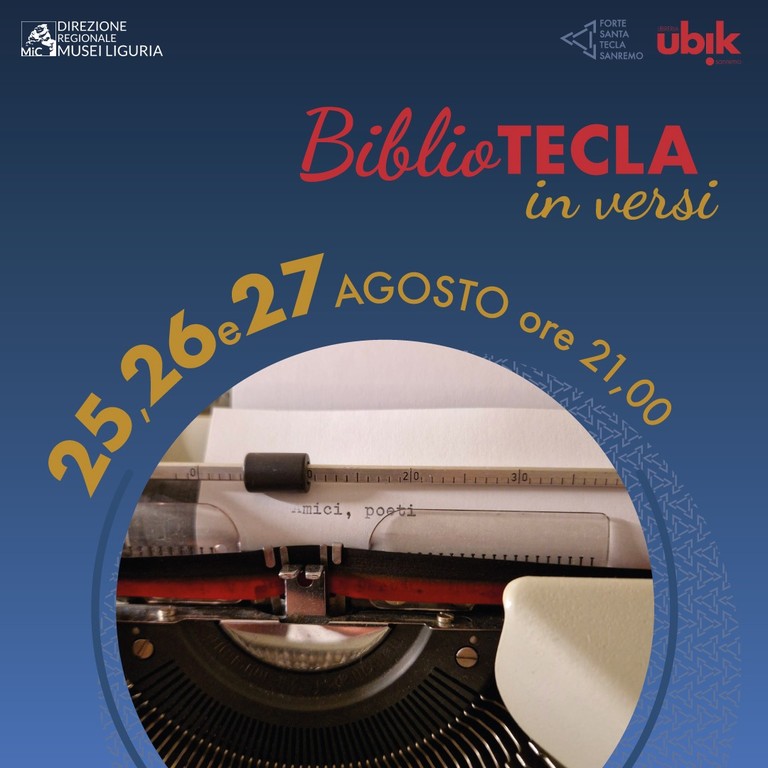 Sarà inaugurata venerdì prossimo, il 25 agosto alle 21.30, “BiblioTecla in versi”, la tre giorni dedicata alla poesia organizzata in collaborazione con la libreria Ubik di Sanremo con il coordinamento di Fabio Barricalla e la partecipazione di Luca De Vincentiis e Rossella Masper.