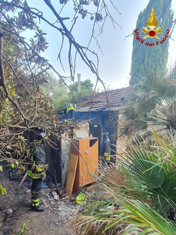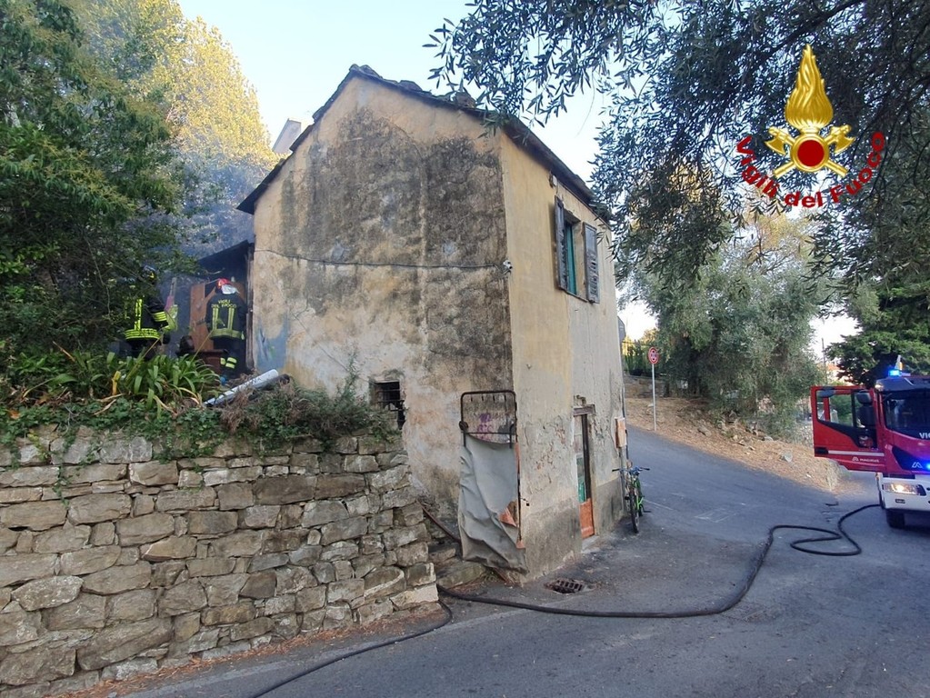 Imperia, casone disabitato in fiamme: vigili del fuoco in azione (Foto)