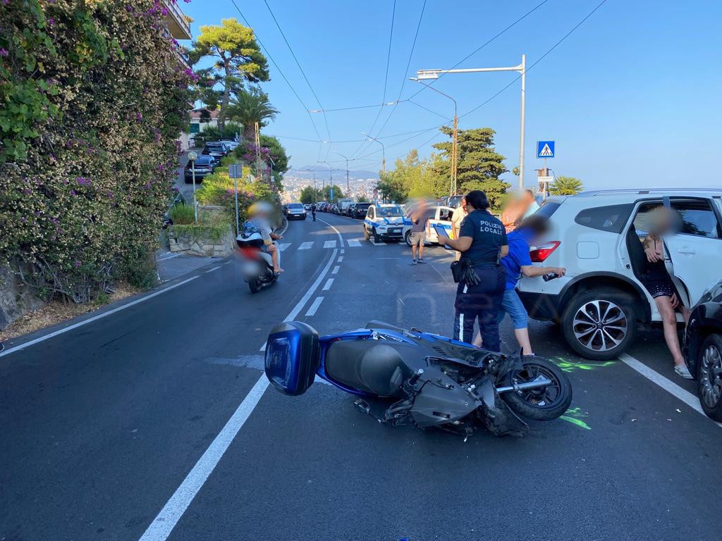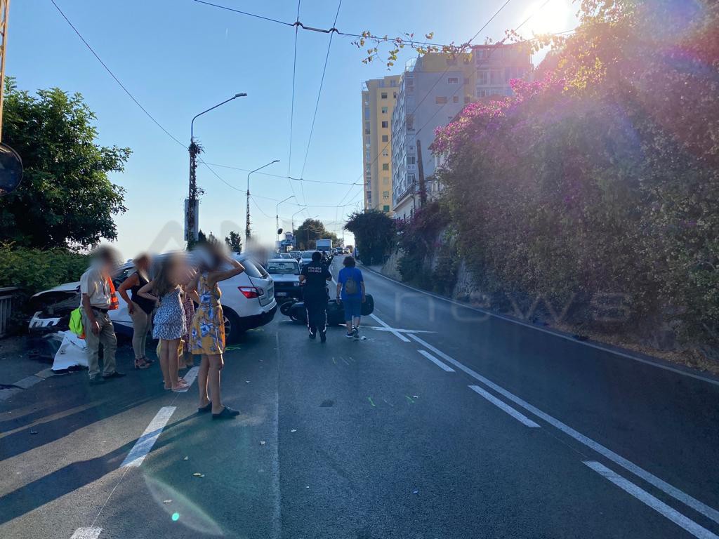 Grave incidente stradale in corso Marconi a Sanremo. Un'auto ed uno scooter si sono scontrati, all'altezza del bivio per Capo Nero.