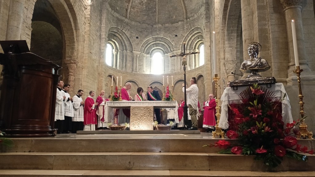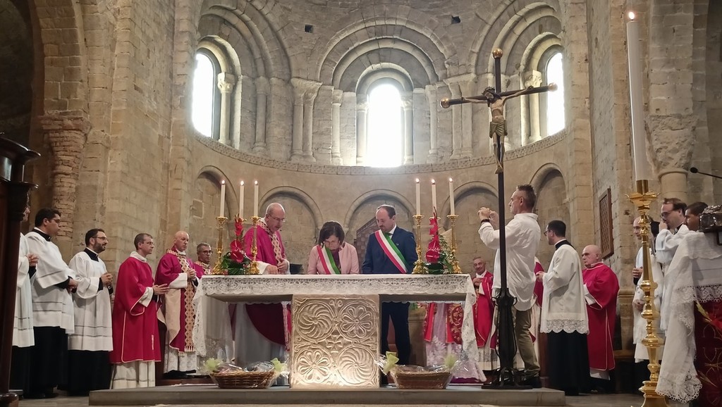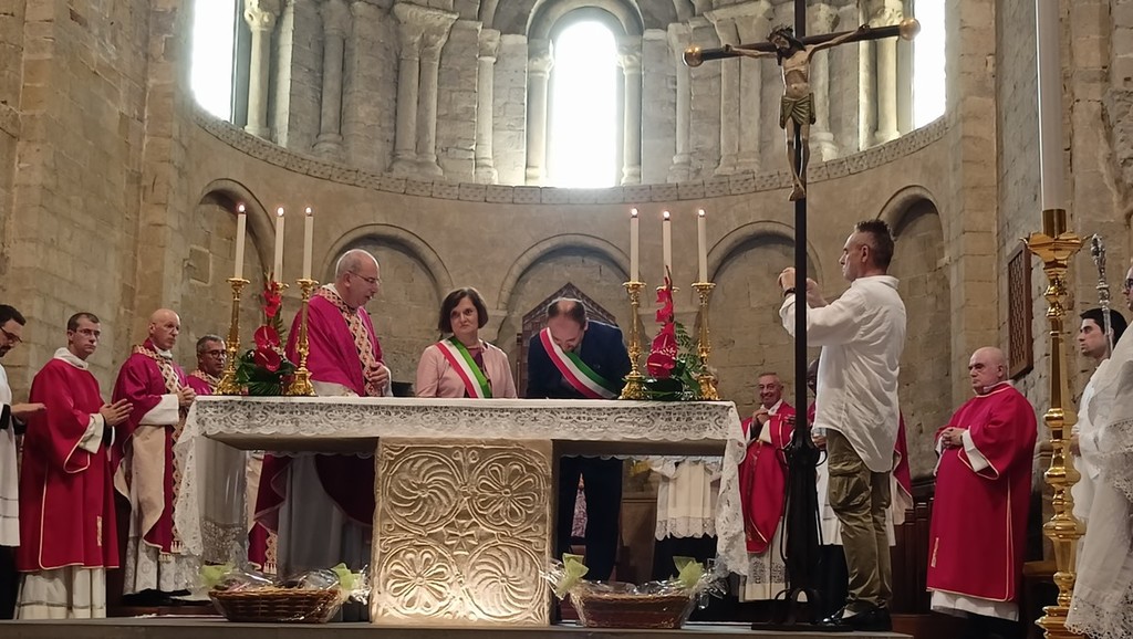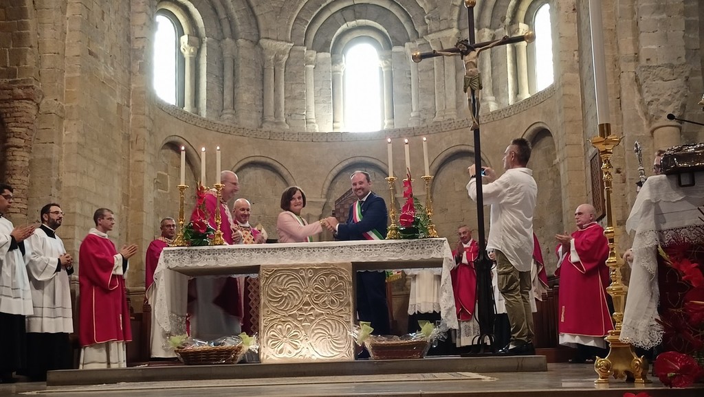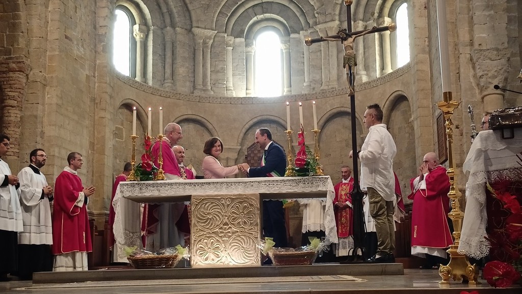 Alla conclusione della santa messa pontificale concelebrata, nella Cattedrale di N.S. Assunta, da Monsignor Antonio Suetta, vescovo della Diocesi di Ventimiglia – Sanremo, e da Monsignor Roberto Farinella, vescovo della Diocesi di Biella, alla presenza dell’Amministrazione comunale, delle autorità civili, militari e religiose locali, provinciali e regionali, delle associazioni cittadine, della Croce Verde Intemelia e della cittadinanza, il sindaco di Ventimiglia Flavio Di Muro e il sindaco di Salussola Manuela Chioda hanno firmato il patto che unisce così le due città legate dal patrono San Secondo.