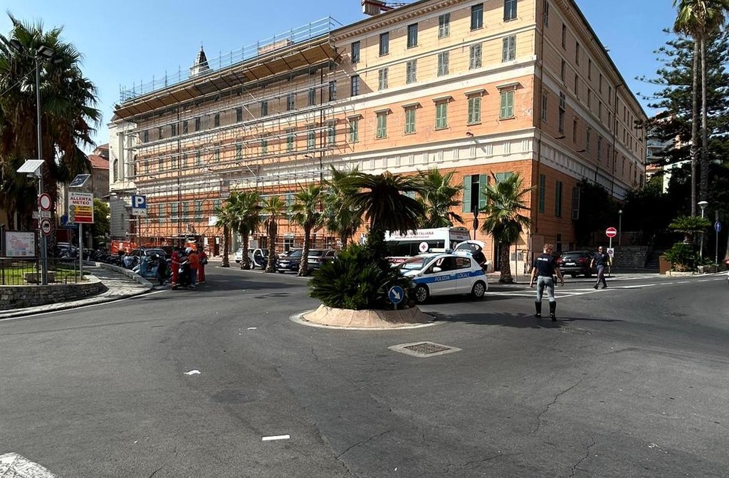 Scontro tra un auto e un scooter in piazza Ulisse Calvi a Imperia nel primo pomeriggio di oggi, all'incrocio tra via Agnesi e via Serrati.