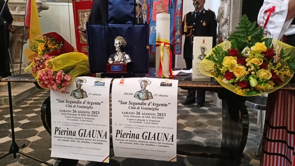 Ventimiglia, nella giornata odierna, celebra San Secondo, il santo patrono della città. I festeggiamenti sono iniziati, nella Sala Polifunzionale di San Francesco nel centro storico, con la cerimonia di consegna del premio San Segundin d’Argentu, che quest'anno, è stato assegnato a Pierina Giauna, poetessa ed autrice di libri nonché testimone e memoria storica del territorio, dei costumi, della vita cittadina e contadina. Per l'occasione erano presenti il sindaco Flavio Di Muro, l’Amministrazione comunale, autorità civili, militari e religiose locali, provinciali e regionali, le associazioni cittadine, la Croce Verde Intemelia e la cittadinanza.