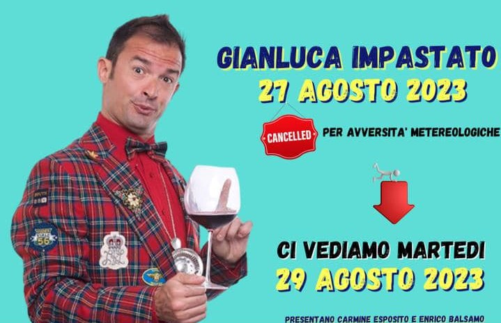 Lo spettacolo comico di Gianluca Impastato in programma domenica 27 agosto sul Molo delle Tartarughe è stato posticipato, in accordo con gli organizzatori, a martedì 29 agosto 2023 sempre alle ore 21.30.