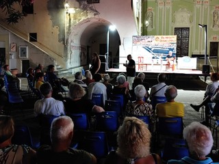 Applausi per l'attore Gioacchino Logico impegnato in uno splendido monologo tributo a Gigi Proiettiieri sera a Riva Ligure. Un altro spettacolo teatrale che ha arricchito il calendario manifestazioni del Comune di Riva Ligure. L'attore ha dato prova della sue formidabili capacità interpretando e ricordando il compianto attore Gigi Proietti. Una serata in cui il numeroso pubblico è stato costantemente coinvolto dal bravissimo attore della Riviera di Ponente in uno spettacolo che è durato 90 minuti.