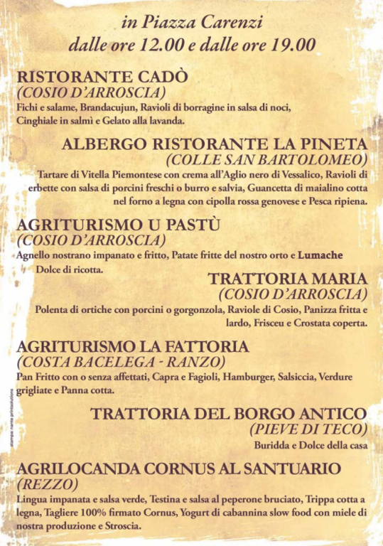 Ecco i ristoranti partecipanti e i piatti tipici che potrete gustare a Pieve di Teco: