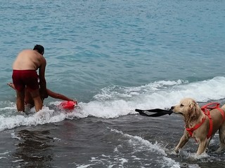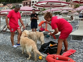 In estate gli amici a quattro zampe delle unità cinofile da salvataggio in acqua sono a supporto in spiaggia al servizio di assistenza bagnanti. "Il loro obiettivo è quello di nuotare fino al bagnante che chiede aiuto, per poi vegliare su di lui e portarlo a riva, sia nelle brevi che nelle lunghe distanze. Fanno supporto fisico al soccorritore per questo, è importante che si stabilisca una forte connessione tra conduttore e cane bagnino, poiché insieme collaborano per aiutare e recuperare l’infortunato o la persona in difficoltà in acqua" - spiega Alessia, conduttore di Elly - "Bisogna seguire un corso specifico, una parte riguarda il conduttore, un'altra parte riguarda il cane e poi vi è una parte che si fa in sinergia. Il conduttore deve conseguire il brevetto da bagnino. Il cane segue un percorso di educazione base, di obbedienza e di tecniche di salvataggio che impara a seguire nel corso del tempo con il suo conduttore in un contesto acquatico. Si lavora in coppia e il cane si fida ciecamente del suo conduttore".