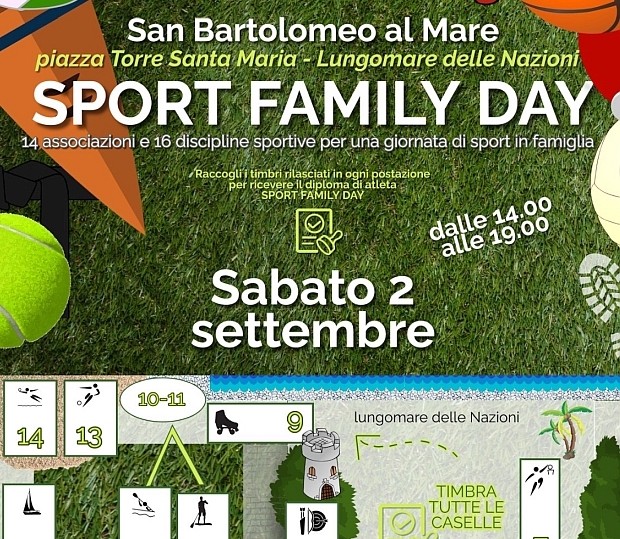 Tutto pronto a San Bartolomeo al Mare per Sport Family Day, l'evento-gioco aperto a ragazzi e famiglie per far provare le attività sportive nell’imminenza dell’inizio del reclutamento che precede la stagione.