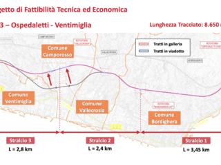 Il Lotto 3 si sviluppa tra Ospedaletti e Ventimiglia interessando anche i Comuni di Camporosso, Vallecrosia, Bordighera. Il lotto 3 è, a sua volta ripartito in più stralci. Il costo stimato dell’intero collegamento è pari 1,2 miliardi di euro, soggetto ad aggiornamento. Il lotto 1 ha un costo stimato in circa euro 300 milioni.